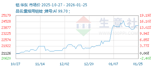 生意社:2026年1月22日中铝铝锭(AL99.70)现货价格微涨