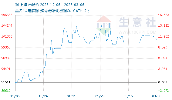 生意社:本周铜市先涨后跌(2.2-2.6)