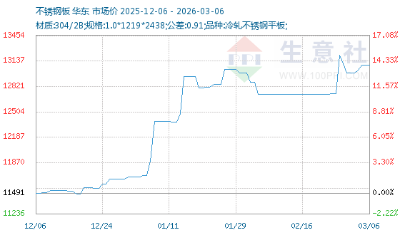 3月6日生意社不锈钢板基准价为13083.33元/吨